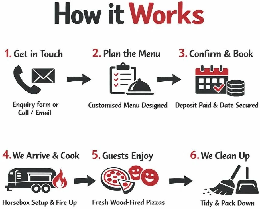 Bring something genuinely different to your wedding, family celebration, staff event, client day or launch. We serve authentic Neapolitan-style pizzas from our beautifully converted horsebox ovens — fresh, fast and made to impress.